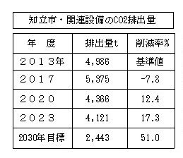 知立市エコプランで炭酸ガス排出量の推移は右表のようになっています。これを見ると17年は排出量が増えていましたが20年には減少に転じ、23年段階では17・3%削減に留まっています。今年3月に改正された30年までの目標は51%に引き上げられており、抜本的な削減計画が必要です。