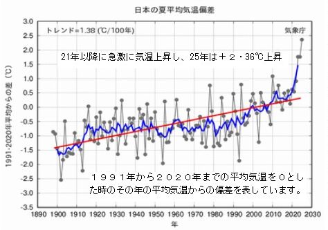 9月議会一般質問で日本共産党の中島たかし議員は急激な酷暑化の実態を示し、市の温暖化防止施策の遅れを指摘し、抜本的な改善を求めました。右のグラフは気象庁が9月に発表した毎年6月〜8月の平均気温の推移を示したものです。過去百年で1・38℃しか上がっていなかったのにわずか5年でこれほど上がっているとは驚きです。