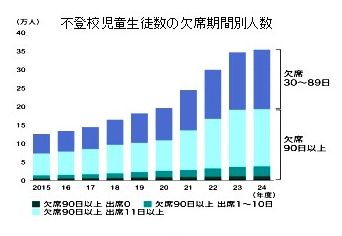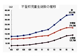 【25.11.09】NO.2297小学校13万7,704人、中学校21万6,266人が不登校(文部科学省令和6年度調査)